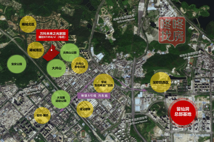 万科未来之光家园项目整体位于宝安区南尖岗山片区,地缘关系上,临近南山留仙洞总部基地、西丽枢纽。