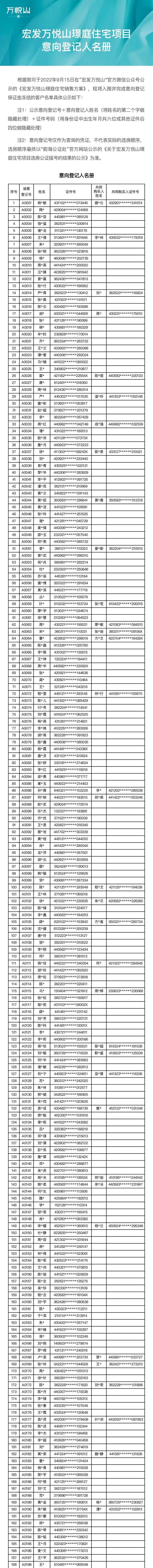 附:宏发万悦山璟庭住宅项目意向登记人名册