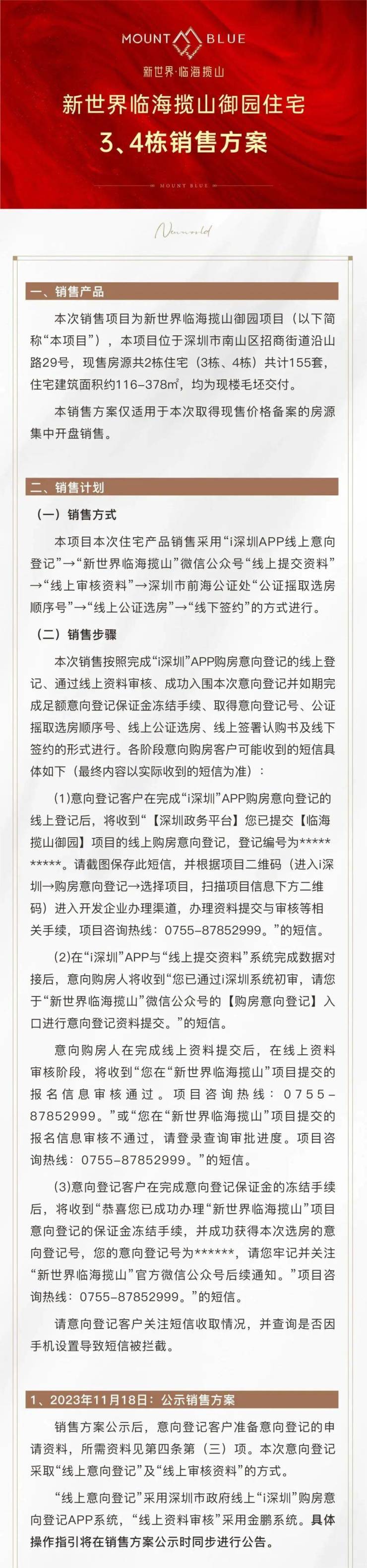 1月18日,蛇口新世界临海揽山发布销售公示。