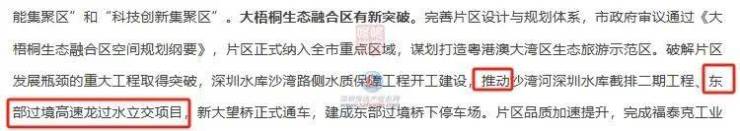 罗湖区在2024年工作回顾中提及“推动东部过境高速龙过水立交项目”,而在2025年工作安排中明确说“开工建设东部过境高速龙过水立交,构建‘南进南出、北进北出’对外交通格局。”