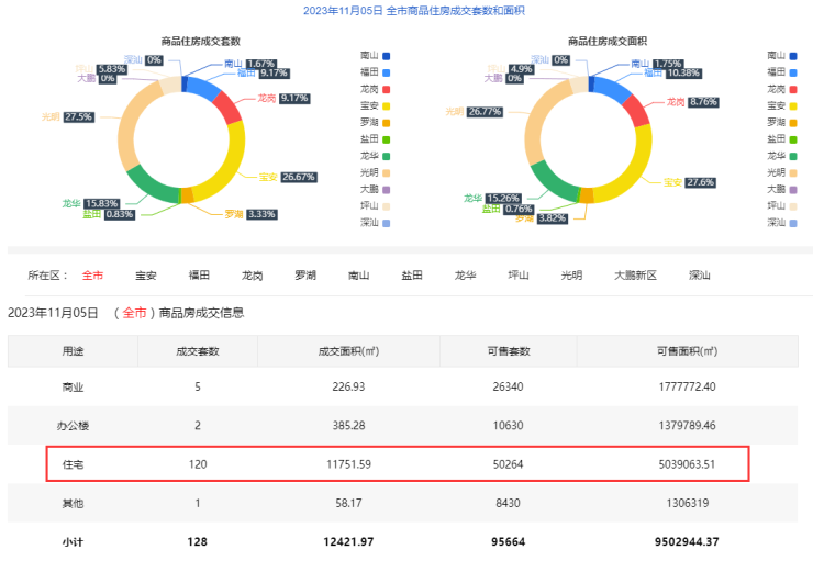 11月5日深圳新房住宅网签120套 二手房住宅网签18套