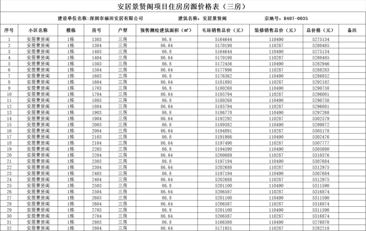 32套三房,总价区间约528-532万/套,按1.5成首付来算,约80万左右可买入,各户型价格如下: