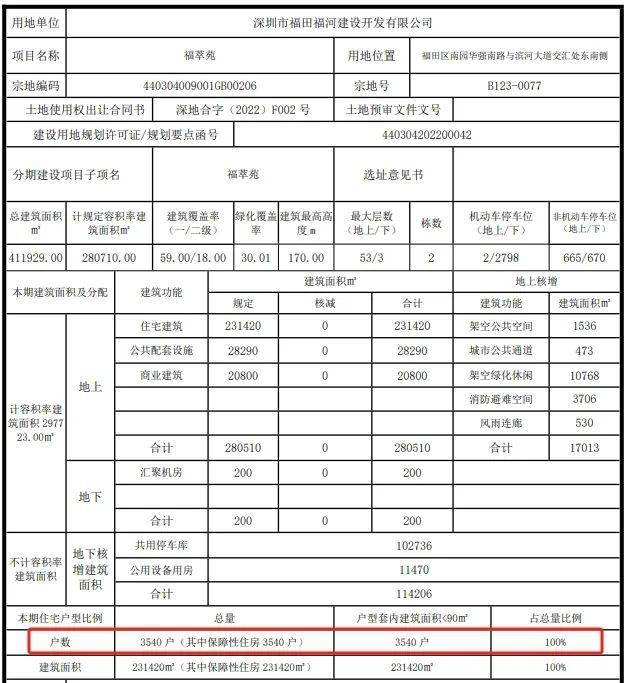 福萃苑用地面积约4.2万㎡,总建面约41万㎡,计容建面约28.1万㎡,其中,住宅建面约23.1万㎡。共规划有3540套房源,含保障性租赁住房和配售型保障房。