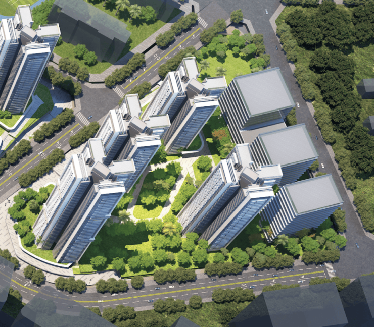 根据规划,项目总用地面积约2.2万m²,总建筑面积为17.3万m²,包含4栋塔楼,包含3栋60米高的办公楼。