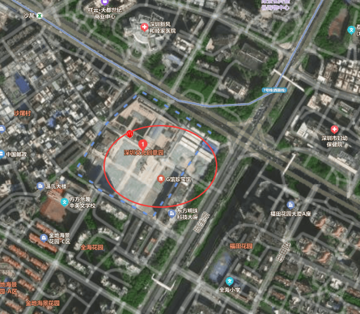 沙头文化创意园更新项目,位于新洲路和福强路交汇处西南角,邻近地铁7号线沙尾站。