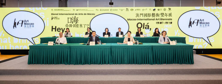 7月2日, “艺文荟澳2025”新闻发布会在澳门文化中心会议室举行,文化局局长梁惠敏,教育及青年发展局副局长黄嘉祺,旅游局旅游推广厅厅长刘凤池,新濠博亚娱乐董事钟玉文,澳娱综合度假股份有限公司企业品牌发展及市场推广高级副总裁梁珮儿,银河娱乐集团公共关系助理高级副总裁黄芝蓉,威尼斯人澳门股份有限公司企业传讯及社会事务副总裁江慧贤, 永利澳门及永利皇宫项目策划副总裁刘健敏,美高梅文化艺术总监何桂姗,“艺文荟澳:澳门国际艺术双年展2025”总策展人冯博一,文化局副局长郑继明及蔡健龙,视觉艺术发展处处长尹保伦,澳门艺术 博物馆代馆长唐重,“艺文荟澳:澳门国际艺术双年展2025”联合策展人刘钢及吴蔚,以及参展本地艺术家陈显耀、陈颕蓝、周凯伦、何俊彦、吴敏慧、吴少英、 司徒俭、黄美婷及黄颖祥等出席。