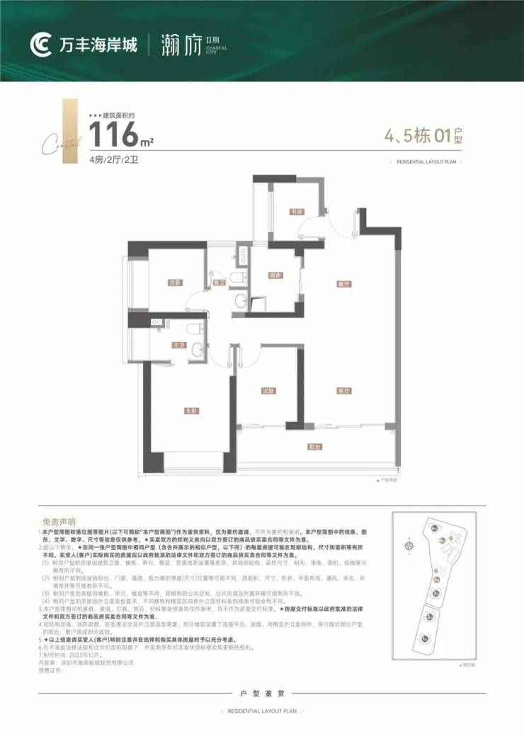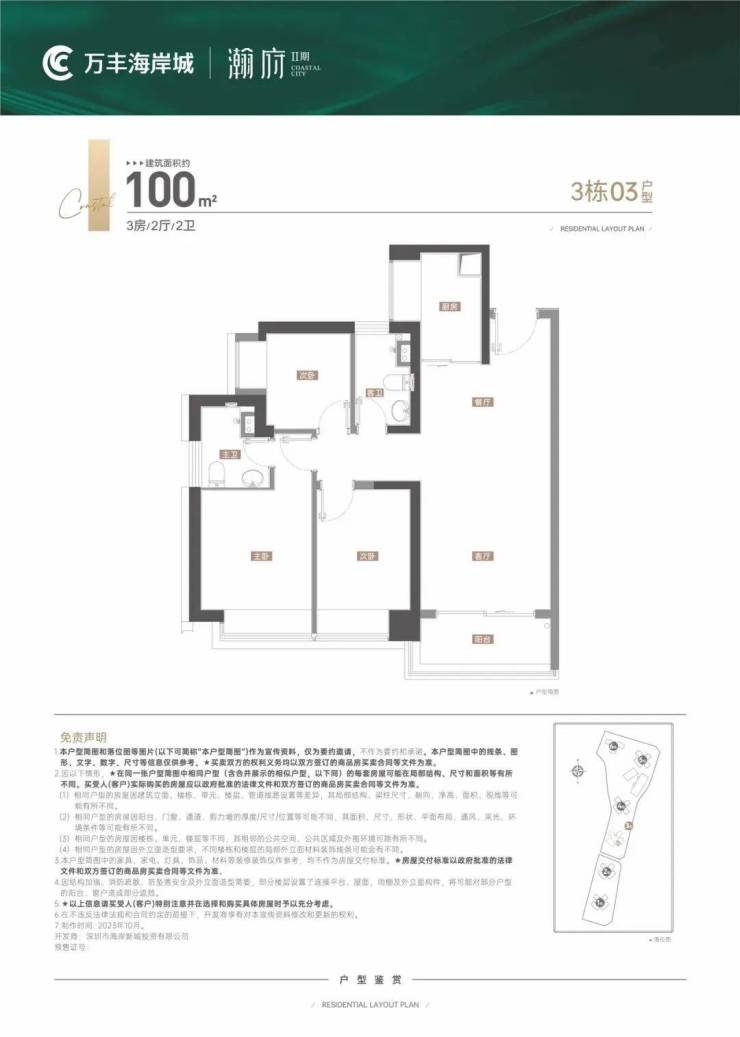 万丰海岸城瀚府占地约3万㎡,由6栋塔楼、1所幼儿园(3F)组成,2楼为架空层花园,3F起为可售商品房,15F和34F为避难层,整个建筑布局南北向呈点式排开。