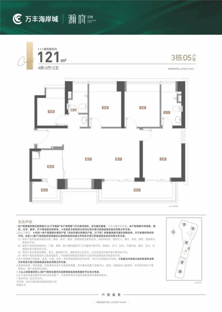 2023年万丰海岸城瀚府推建面约100-120㎡,均价5.74万/㎡,首开当日去化率约7成。