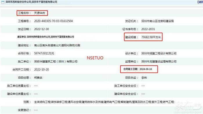 今日,家在网友爆料了南山天源华府的最新进度,据招标文件显示,项目建设规模:79682.98平方米;合同价格约6亿元,合同开工日期:2022-10-20,合同竣工日期:2024-06-16。