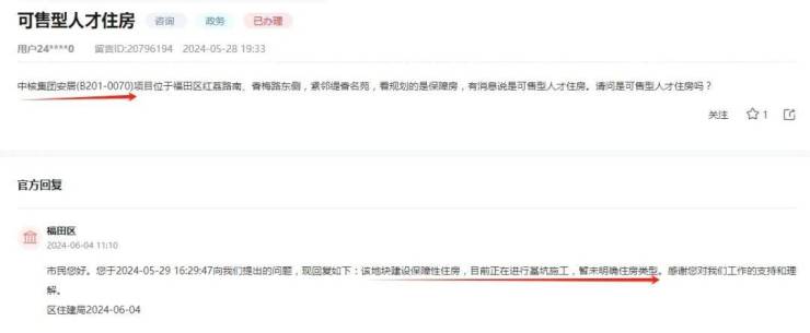 而此前福田区住建局也曾就地块性质回复过:该地块建设保障性住房,暂未明确住房类型。