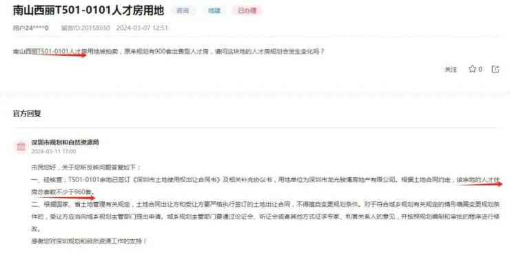 尽管去年官方给出的答复是,没有变更规划,依旧是人才住房。