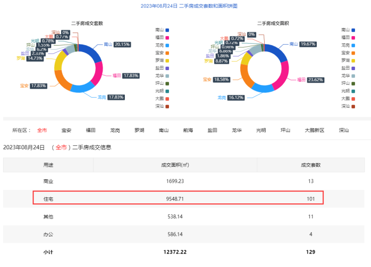 8月24日二手房住宅网签101套。宝安19套;福田13套;龙岗18套;罗湖14套;南山24套;盐田3套;龙华7套;光明1套;坪山1套;大鹏1套。