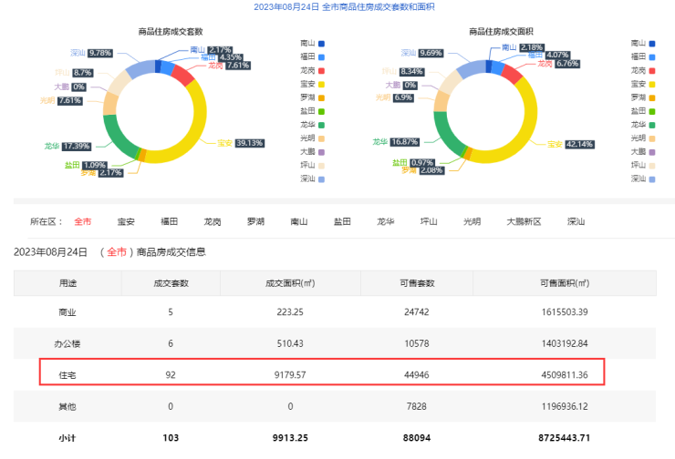 8月24日新房住宅共网签92套。宝安36套;福田4套;龙岗7套;罗湖2套;南山2套;盐田1套;龙华16套;坪山8套;光明7套;大鹏0套;深汕9套。8月24日二手房住宅网签101套。深圳8月一手住宅累计网签17…