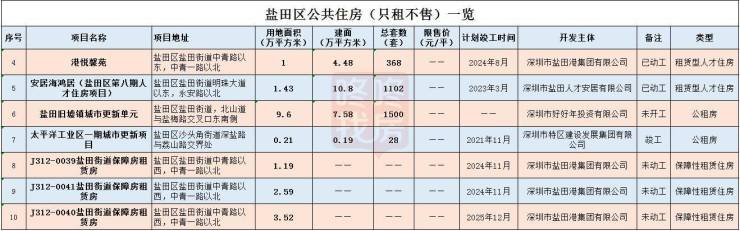 截止目前,统计到的盐田区公共住房项目共有10个,包括: