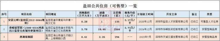 2600多套可售,单价2.73万/平...盐田区公共住房清单出炉