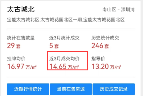 太古城花园(北区)的二手房交易算是比较活跃,据@行舟深房 太古城北花园二手房近3个月成交5套房源,交均价约14.65万/㎡,高于小区的参考价。