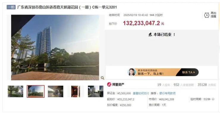 19位富豪围猎,1.32亿成交!深圳又拍出天价豪宅