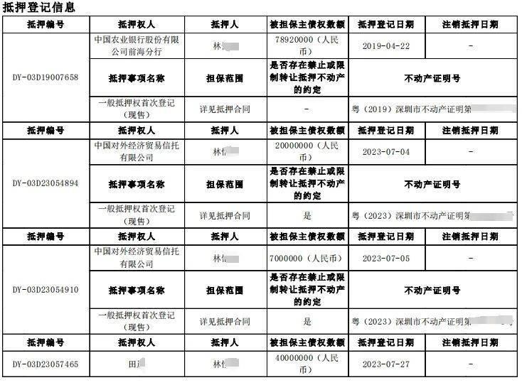 其中2019年4月向农业银行办理了7892万的按揭贷款,又于2023年7月向信托公司及田某,先后三次借出2000万、7000万、4000万。