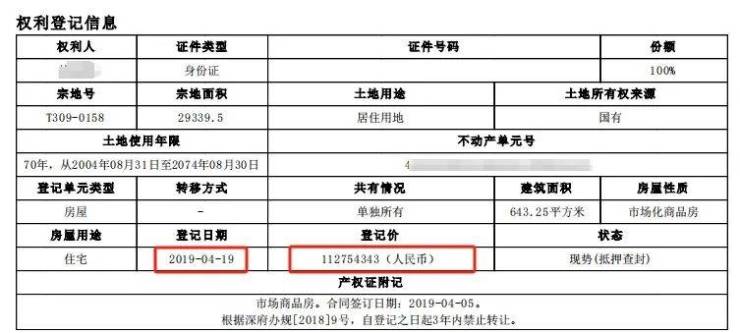 该房源是原业主于2019年4月购入的,登记价约1.13亿,也就是说6年过去了,这套房源在法拍网上还涨了近2千万。