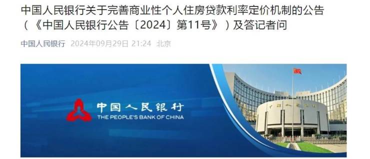 此前,中国人民银行行长潘功胜9月24日在国新办发布会上宣布,降低存量房贷利率,引导商业银行将存量房贷利率降至新发放房贷利率附近,预计平均降幅在0.5个百分点左右。