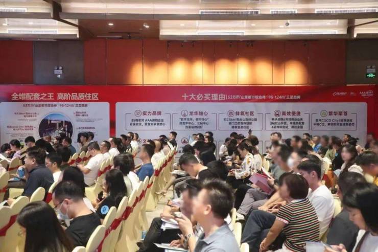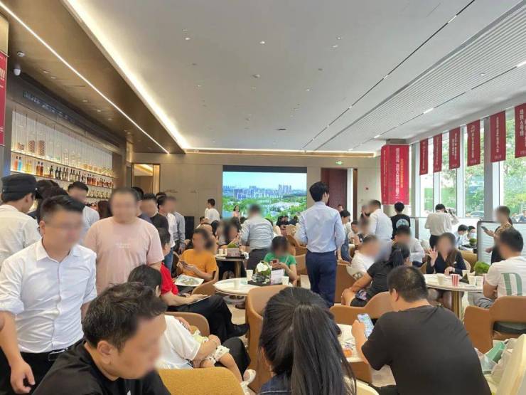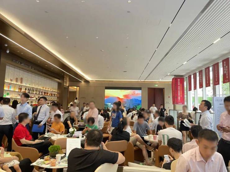 当天早上7点半便有大量客户抵达开盘现场,选房顺序靠前的客户更是早早冲入会场,不足9点会场内已经座无虚席。