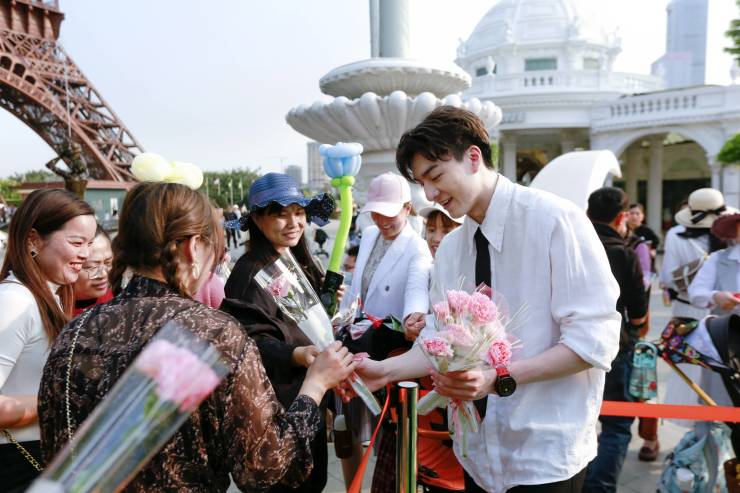 三月踏春季,最美妇女节。3月8日,深圳世界之窗主环道上,一群帅气的男团NPC推着浪漫花车,陪伴园区女游客开启了沉浸式踏青之旅,欢乐畅游“世界”,很多女游客收到了男团们特赠的节日鲜花,感受到景区浓浓的诚意和满满的仪式感。现场“穿过世界,骑遇浪漫”打卡墙吸引了不少游客合影留念。