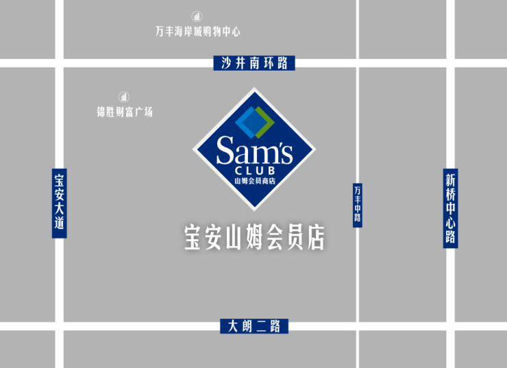 山姆会员店(宝安店)是山姆会员店首次在宝安布局,位于深圳市宝安区沙井南环路与万丰路交会处,总建筑面积约2万平方米,也是深圳第5家山姆会员店。