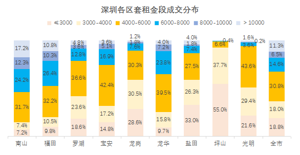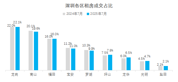 7月深圳租金74.2元/㎡,近六成租客选择龙岗、南山、福田租房