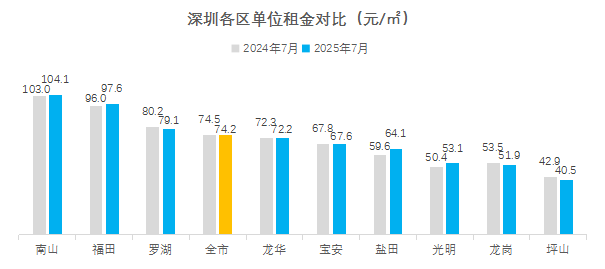 据深圳贝壳研究院监测,今年7月深圳商品房单位租金为74.2元/平方米,整体租金水平趋于稳定。