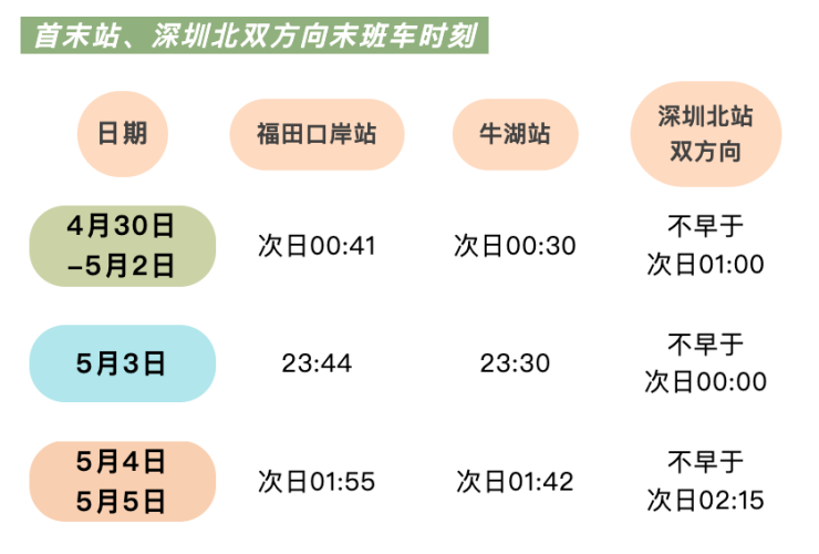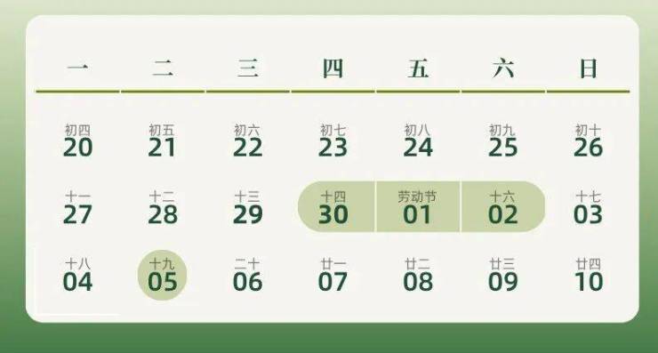 4月30日-5月2日、5月5日延长服务1小时。
