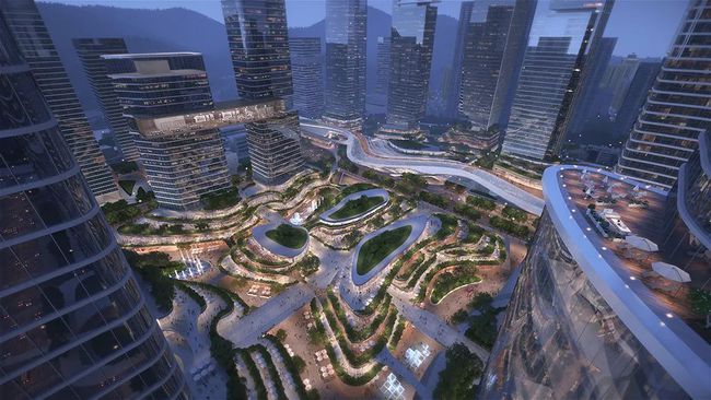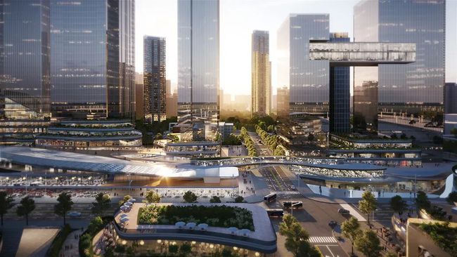 此方案由Aedas、中铁第四勘察设计院集团有限公司、深圳市城市交通规划设计研究中心股份有限公司联合体,基于全新的站城开发逻辑,在深圳罗湖打造了清水河综合交通枢纽方案,在高度的站城融合中构建超级枢纽城。