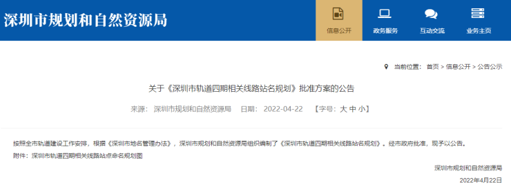 《深圳市轨道四期相关线路站名规划》批准方案