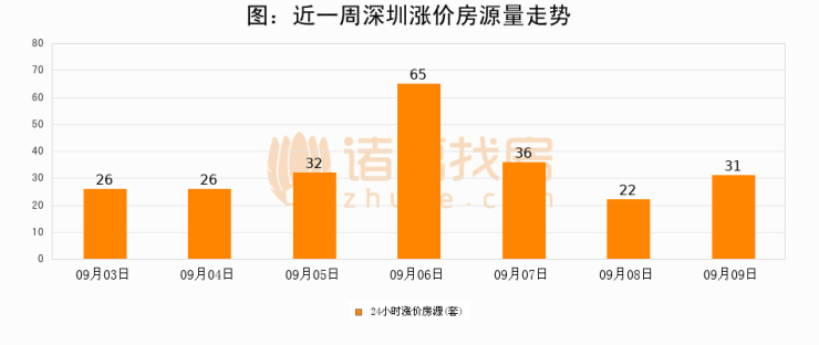 根据诸葛找房数据显示,深圳24小时涨价房源量为31套,较09月08日增加9套,环比上涨40.9%。与此同时,涨价房源占比小幅扩大,业主信心有所提升。