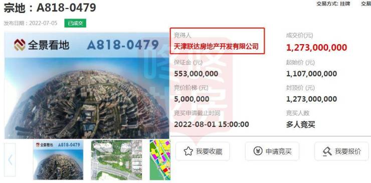 2022年8月4日,天津联达(联发)以12.73亿+竞配3510平拿下龙华民治街道A818-0479宗地,该宗地当时竞争不小,经过了14轮竞拍,最终还进入了摇号环节。
