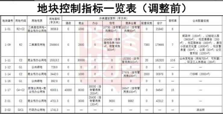 1.地块间指标调整:本次指标调整总指标及分项指标均不变,仅对分地块间指标进行调整。保证同类功能尽可能集中排布,减小地块功能混杂问题;调整幅度不超过10%。