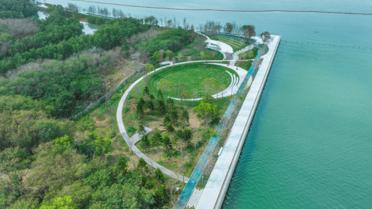 保留现状自然凹地,利用不同高差设计了趣味生态的留白场地,雨水收集池形象生动地给市民科普海绵系统,同时也可作为调蓄雨洪的容器,构建弹性海绵自然草甸。步入其中,蛙鸣鸟叫,市民可沿栈道沉浸式穿越生态海绵绿地,也将成为孩子们的探秘乐园,在都市中体验到自然生态的气息。