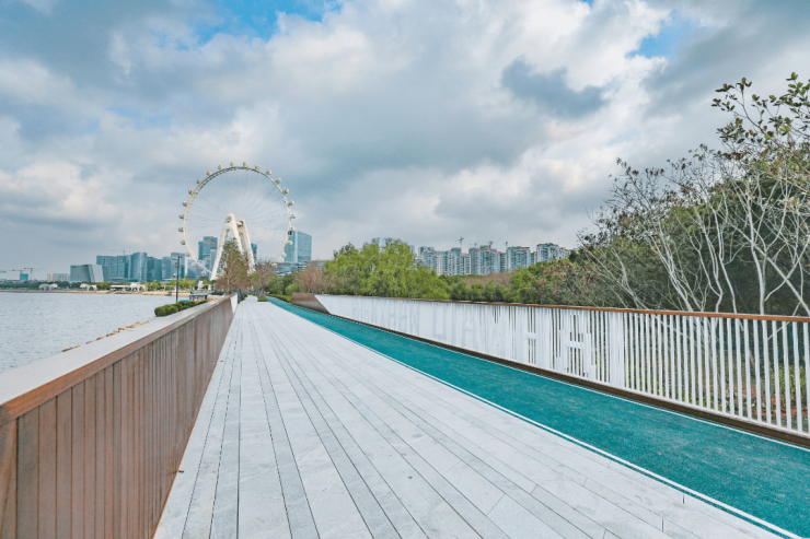 西部海岸活力带宝安示范段总面积约2.7万平方米,建设全长1.5公里的滨海慢步道,作为宝安区“山海连城”计划的重要节点,西部海岸活力带宝安示范段既是前海互联互通的慢行交通枢纽,更是滨海文化公园美景的延伸。从“湾区之光”摩天轮处延伸,跨过新圳河巡河桥,形成一条亲海、观光、运动、休闲为一体的绿色生态休闲带,全面连通宝安中心区与前海海岸线,使前海湾岸线牵手相连,为市民拓展了更丰富的自然亲水体验和全新的摩天轮观赏视角。