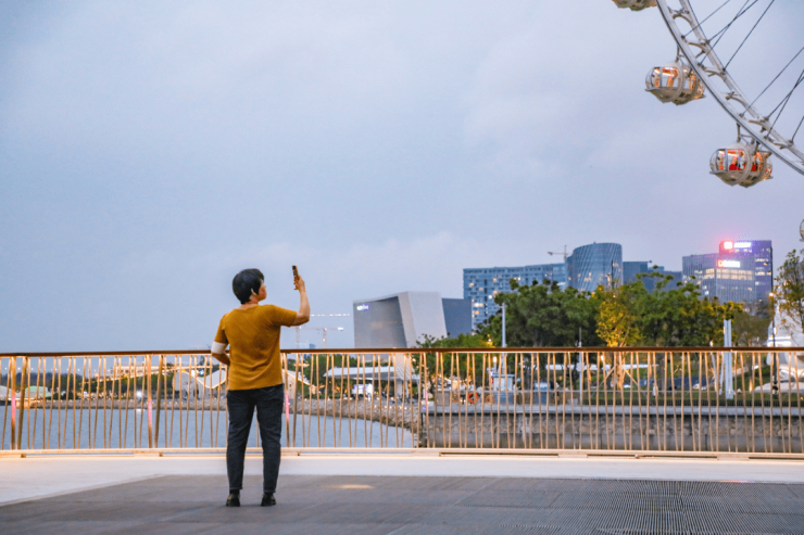 市民在这里可倚靠临海吧台享受清凉海风,欣赏红日随摩天轮的转动缓缓升起和落幕的美景。