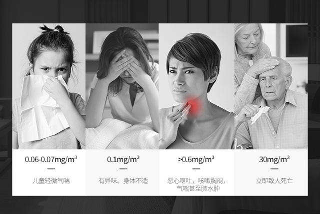 室内污染物主要分为几种:甲醛、PM2.5、苯系物和TVOC,对室内污染有所了解的朋友必定也知道在这些污染物中,甲醛是最难处理的,不同于其他污染物,甲醛的挥发期可长达3—15,具有反复超标的顽固性,其次,相对而言,甲醛的危害较大。甲醛不但可导致各种呼吸道疾病,还会导致不孕不育、胎儿畸形,甚至诱发儿童白血病、致癌致死。