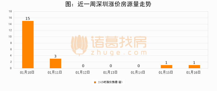 根据诸葛找房数据显示,深圳24小时涨价房源量为1套,较01月15日持平。