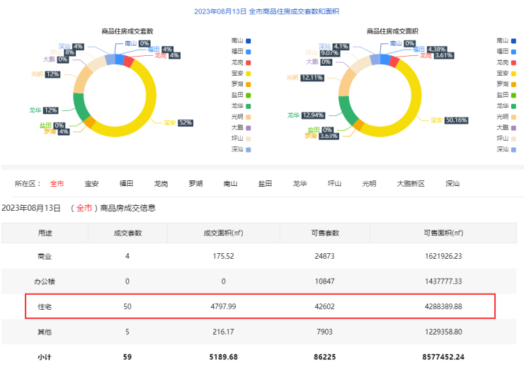 8月13日深圳新房住宅网签50套 二手房住宅网签8套