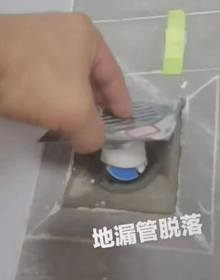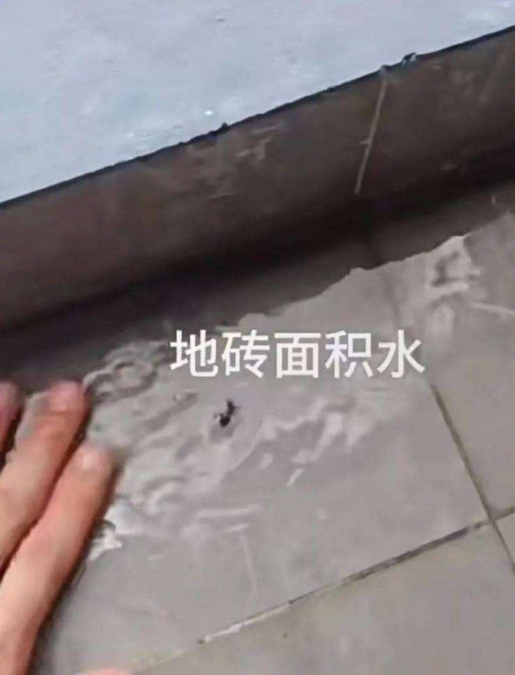网友提供的照片显示,小区墙面瓷砖出现凹痕。此外,其它社交媒体平台上也有网友发布视频称,验房时发现房屋存在地漏管脱落、地砖面积水、下水管错位、窗框焊接粗糙等问题。