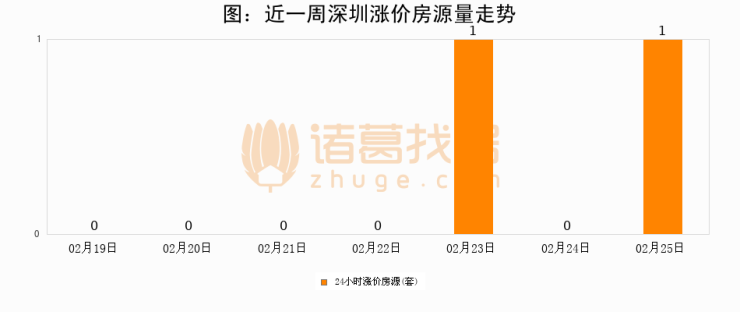 根据诸葛找房数据显示,深圳24小时涨价房源量为1套,较02月24日增加1套,环比上涨0%。与此同时,涨价房源占比小幅扩大,业主信心有所提升。