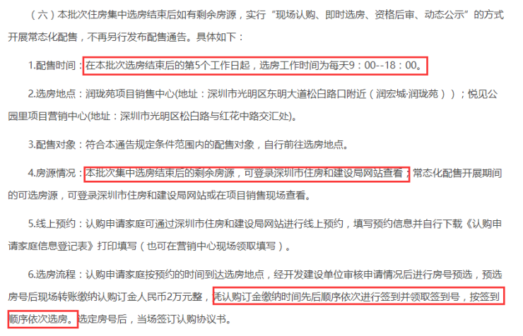 从深圳可售型人才房配售历程来看,一般房源量剩余不多后,项目考量时间、金钱等成本后将实行常态化配售,实行“先到先得”的方式认购。