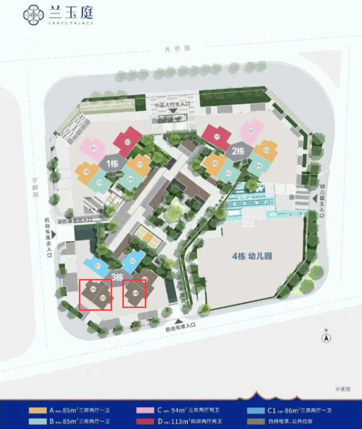 兰玉庭由3栋45层建筑+1所幼儿园组成,共规划558套房源,其中,商品房474套,安居房84套,车位752个。