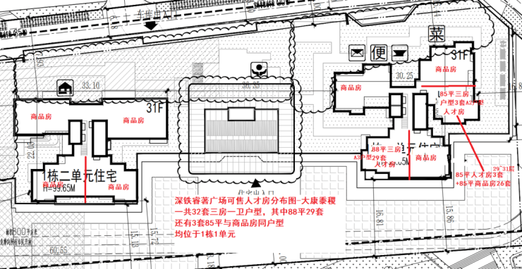 将推的人才房,均为3房产品,据@大康聊房 信息,人才房位于1栋一单元,户型为建面约85㎡、88㎡,与商品房无差异。