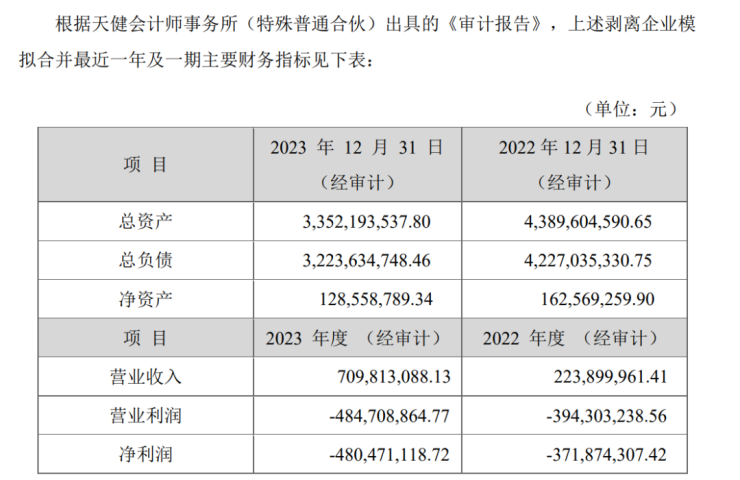 从山子股份披露的数据来看,截至2023年12月底,上述剥离企业模拟合并报表数据为,2023年实现营收7.098亿元,净利润为-4.8亿元。
