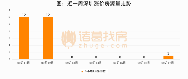 根据诸葛找房数据显示,深圳24小时涨价房源量为1套,较02月16日增加1套,环比上涨0%。与此同时,涨价房源占比小幅扩大,业主信心有所提升。
