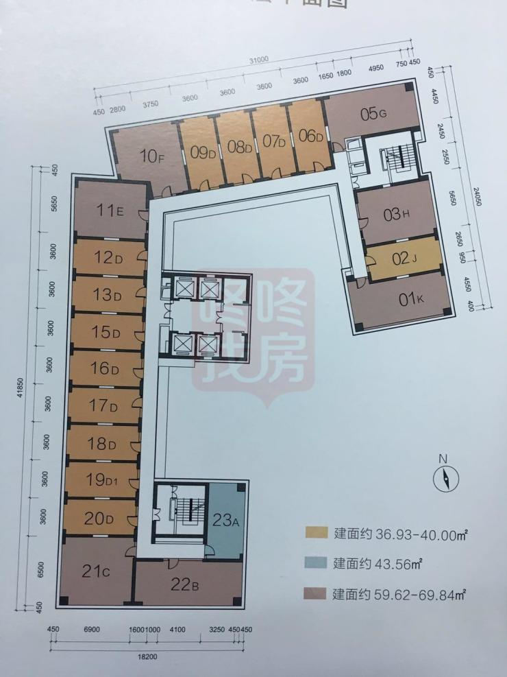 分布最为广泛的是建筑面积约36.93-40㎡户型。