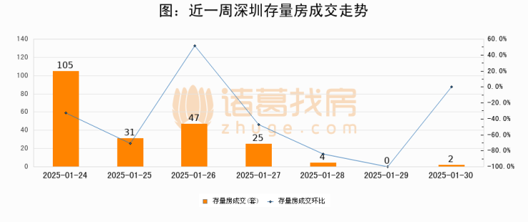 从存量房来看,2025年01月30日深圳存量房单日成交2套,比昨日增加2套,环比上涨0%。从近一周存量房成交来看,深圳存量房日均成交套数为30套,01月30日单日成交2套,低于近一周平均水平93.3%。